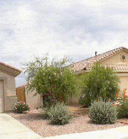 Rick and Cindy have a lovely home. We are in the process (well we will be) of planting a garden in the back yard. The front yard has some very pretty plants. The flowers out here seem to have extra color to them. I'm not sure if that's just my imagination or if it's a desert thing, but there is a real richness to the colors. The architecture here is so very different from the east coast too. Adobe instead of wood. I like it, but my eyes are still getting used to it.