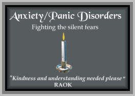 Two other good sites for help and information on Agoraphobia and Panic are: Encourage Connection, and The Healthy Place.
