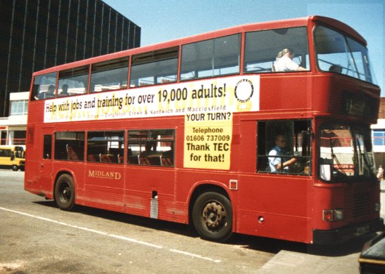 , G 801 THA, Dennis Dominator with East Lancs H47/29F Bodywork. New to Midland Red North in 1990, it is seen here at Hanley Bus Station in 1997.