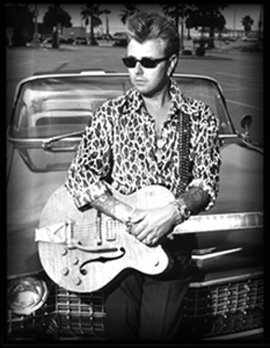 This singer/guitarist from Long Island began performing rockabilly in 1978 with his first band the Bloodless Pharoahs. They were mainly a new wave/punk group, but when Brian started closing shows with '50s rockabilly songs, people freaked out. Inspired, Brian devoted himself to preserving the style and soul of late rockers Eddie Cochran and Gene Vincent (the latter he would portray in the movie La Bamba). He began to dress the part, wearing gold pleated pants, a sharkskin jacket & putting his hair in a big, slick pompadour. He started playing solo side gigs to make extra cash and people were loving it. In 1979 he met drummer Slim Jim Phantom (Jim McDonnell) and bassist Lee Rocker (Leon Drucker).