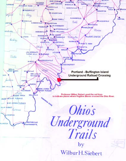 Special thanks to Henry Burke, historian of the Gen. B.D. Fearing Camp # 2, Sons of Union Civil War Veterans and the Southeastern Ohio Coordinator for the Ohio Underground Railroad Association , for sharing this information with us and supplying a copy of Professor Siebert's map.