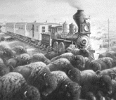 " I have been on a train when the black moving mass of buffaloes before us looked as if it stretched on down to the horizon. Everyone went armed in those days, and …(it) was the greatest wonder that more people were not killed, as the wild rush for the windows, and the reckless discharge of rifles and pistols, put every passenger’s life in jeopardy… I could not for the life of me avoid a shudder when a long line of guns leaning on the backs of seats met my eye as I entered a car. When the sharp shrieks of the train whistle announced a herd of buffaloes the rifles were snatched, and in the struggle to twist around for a good aim out of the narrow window the barrel of the muzzle of the firearm passed dangerously near the ear of any scared woman who had the temerity to travel in those tempestuous days…