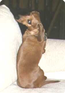 I was born on July 16, 1995 in a small town north of Daytona Beach, Florida. I'm a smooth, red miniature dachshund. Though I'm a very little girl, I make my wishes known and make sure that things go as I want!