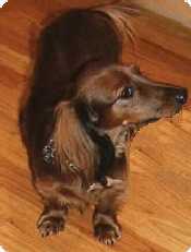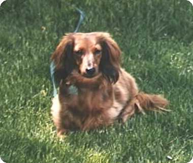 I was born on June 12, 1997 and am a longhaired, miniature dachshund. My coat is red and black and people say I'm adorable!