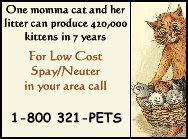 Every day Hundreds of animals are killed due to unwanted babies. If you get a dog or cat please, do us and your pet a favor. Get him/her neutered/spayed. Just look at these pictures. These wonderful animals are going to be killed if no one offers a home to them. There are thousands more just like these that need a home. There a plenty breeders out there and although more are welcome we want only highly trained professionals. Do not buy from a breeder who will not take back the pup/kitten if you don't want him/her anymore. Soon to come are tips on selecting the right dog/cat so that you wont buy the wrong dog/cat and then end up putting them in a shelter.