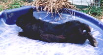 This is called a seal, or double shaded, as newborns, they have a slight brownish color to them, when they are young, they could pass as a black, but in the 2nd picture--this 5 month old buck is obviously got the seal shading on him. The seal is a rabbit that inherited the double shaded gene, you could possibly get seals from breeding 2 shadeds together. However the little bunny in the picture was from a chestnut steel X black silver marten breeding, obviously both of these rabbits (the steel and BSM carry the shaded gene). The good thing about seals is that if you breed them to a REW or himalayan colored rabbit, you will get 100% showable smoke pearls or sia sables.