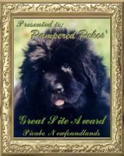 Wow & Howl:)! Whatyathinky of THIS GORGEOUS ABD! NEWFOUNDLAND? Wonder WHY they thinky that WE R "PAMPERED PEKES":0)? Okay, we admit it AUNTIE*ELLEN. Thanks so much for this AWARD. Yawl have such a BEAUTIFUL ABD!House and just KNOW that all Pet Lovers passing thru here will give yawl a CLICKEROONIE, giggle! And betcha they SIGN YOUR GUESTBOOKY 2!