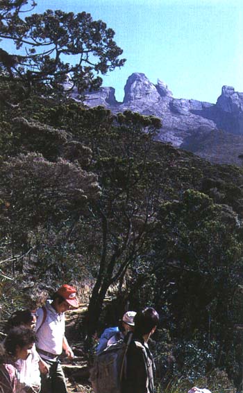 ![]() Large areas of granite rock soon begin to appear and at about 3,353m (11,000ft), the edge of the tree-line. Panar Laban is reached. Most people stay overnight here at the Laban Rata Resthouse where electricity, hot water, room heaters and a canteen are available, before climbing to the summit the next morning. The name Panar Laban is derived from a corruption of the Dusun word meaning 'Place of Sacrifice'. Here the first explorers stopped to sacrifice a white cockerel and seven eggs to appease the mountain spirits. Today, the sacrifice is still carried out once a year. There are also three other mountain huts in this area with mere basic fecilities |