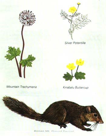 Burlington Hut. The most conspicuous creature at these a altitudes is the BORNEAN MOUNTAIN GROUND SQUlRREL (Dremomys everettii) which is often seen scampering about in the scrubby vegetation. The KlNABALU RAT (Rattus baluensis) is another well-known species which is found only on the mountain. It has dark grey woolly hair. ![]() |