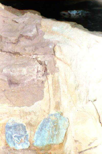 Here is a detail of a gap area filled in with wet concrete and carved. The darker area is the pre-molded slab with pigment. As an accent I added real fossils that were found in Arizona.