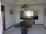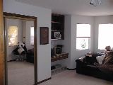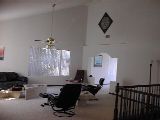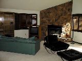 Oh, yeah... The dining room. There's a sliding glass door opposite the archway; through it is a deck. Standing on the deck looking toward the right: