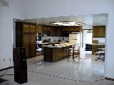 If you walk straight back between the living room and the guest room, you end up in the kitchen, with the listening room on your right. Here's a view of the kitchen from the listening room: