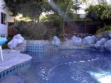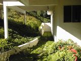 The slider behind the patio furniture leads into the listening room; the slider to the right of the furniture leads into the kitchen. Here's the view back from the chairs:
