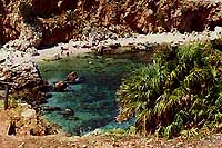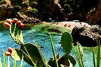 Riserva naturale orientata del Lo Zingaro - Přírodní rezervace Lo Zingaro byla jedna z prvních informací, kterou jsem před dovolenou "vylovil" na internetu. Díky bohaté nabídce informací na různých stránkách jsem si mohl vytvořit o tomto místě jistou představu. Výsledek? Ano i ne. Ano - zejména prostředí místních pláží se blížilo mým představám. Ne - ostatní krajina vypadala úplně jinak. Lo Zingaro je asi osm kilometrů skalnatého pobřeží a přilehlých hor, které dosahují více jak 900 m n. m., což s ohledem na malou vzdálenost od moře působí dosti impozantně. Do hor vedou dokonce značené turistické cesty (na místní podmínky je to výjimka - vždyť je to rezervace), které jsme pro omezené časové možnosti neměli možnost otestovat. V celé rezervaci není žádná silnice, jen cesta pro pěší a mezky. Je to místo,jehož návštěvu nelze vynechat. Organizátoři rekreace, vědomi si atraktivnosti této rezervace, zorganizovali dva fakultativní zájezdy, což účastníci dokázali ohodnotit. Zde si přijdou na své milovníci koupání, skalní turisté i milovníci flóry. Přestože je rezervace hojně navštěvována, nemáte dojem, že by zde bylo celkově přeplněno. |