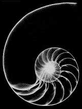 ![]() L'immagine ai raggi X della conchiglia del nautilus evidenzia una struttura geometrica perfetta; la spirale logaritmica. Questa spirale si ottiene da una progressione aurea. |