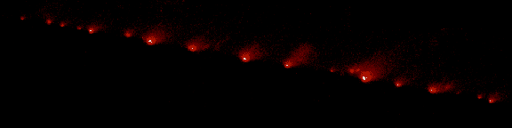 Art mirrors life - scientists were not sure where Shoemaker-Levy would hit Jupiter - click on the comets for a random impact.