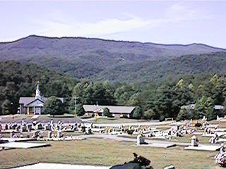 When you get in front of Holly Springs Church, be sure to drive up into the cemetery, it's got a great view of Horse and Pinnacle Mountains. In that first draw just above and to the right of the church is where Gauley Falls is on Emery Creek. Emery Creek flows out of the basin behind the ridge that leads up to Pinnacle. That's where Old Camp Adger use to be, in that basin.