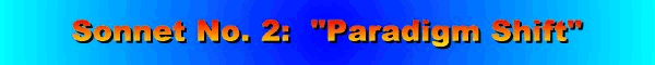 That thresholds of knowledge shock us mortals-- Discoveries, admissions--a new paradigm Where we unwillingly enter portals. Shiva saw holes before destroying earth. So, the old way shall die. The past must end Though we avoid labor pains of rebirth, "Just Phoenix flew from ashes to relive." We resist change and the unknown for fear That our trees will be typed by their bad fruit. Yet, revolt fails as the time draws near When the vacuum sucks our beings toward the Truth, And the future reveals that men's squabbles Sounded like the turkeys'--only gobbles. |