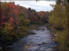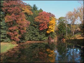 Even though the skys were a gray-blue in color, it only added accentuated the yellow and scarlet trees surrounding the small lake near by. The water was crystal clear, as it reflected the beauty that surrounded it. She blinked several times and caught her breath. It was that beautiful!