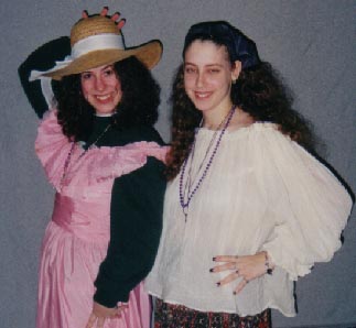 I'm starting to realize that I don't have many photos of myself NOT in a costume. Here I'm dressed as a gypsy, because I was reading tarot cards for my fraternity. We were participating in a Mardi Gras fundraiser, along with other fraternities/sororities/clubs. That's my APO sis with me.