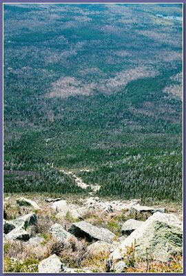 Ktaadn rises 5267 feet above sea level, and the climb up Abol Slide represents an elevation gain of 4000 feet in three miles.