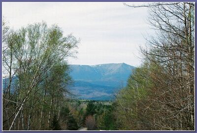 I retrace my route back to Bucksport, then head north to Bangor (it doesn’t rhyme with "hanger"-- instead, say BANG-gore) where I rejoin the interstate and go about sixty miles further in that direction, then exit and head west to Millinockett. A road sign gives a radio frequency for information about Baxter State Park, so I tune in and learn, from a scratchy recorded voice, that the park is closed to camping from April 1 to May 15, and that Ktaadn is usually not "open" till Memorial Day. As if humans can open or close a mountain.