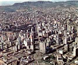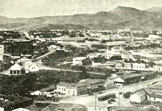 Belo Horizonte de Flausino (em 1936) e cinqüenta anos depois. Ao fundo, a 'Serra do Curral'