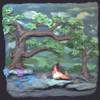 These are some plaques I tried. I'm kinda proud of them. The bird on the right plaque is a miniature mushroom bird (not made of clay). They are |