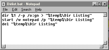 dir %1 /-p /o:gn > "%temp%\Dir Listing" start /w notepad /p "%temp%\Dir Listing" del "%temp%\Dir Listing" |