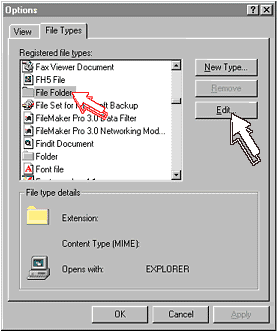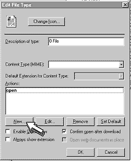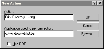 Select File Folder, then Edit and New. Fill in the New Action dialog box