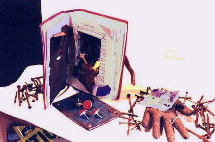 The Secret Panel 1992 (Left) Altered Book (In memory of John Hernandez) How Could You Forget? 1997 (Right) Handmade paper, photo