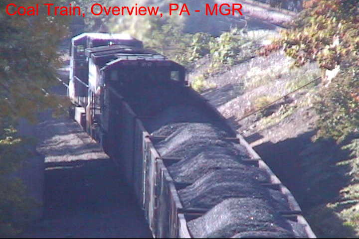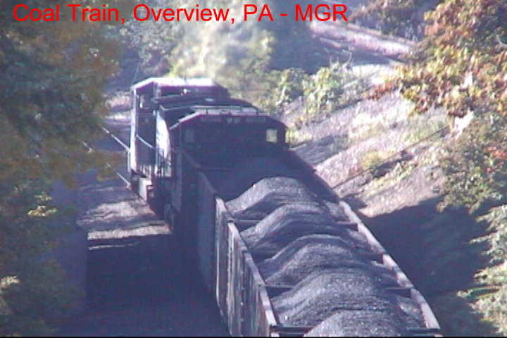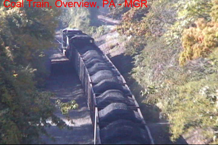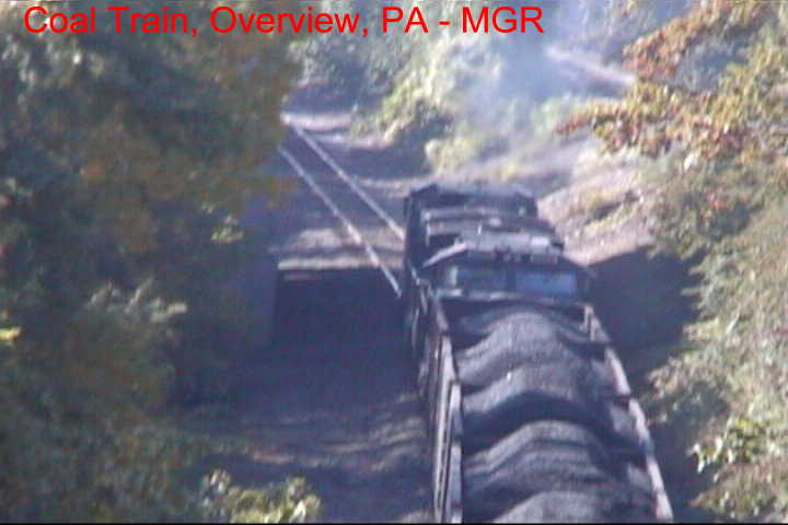 Vidcaps of a coal train crawling under the "Iron Bridge" near Enola Yard.