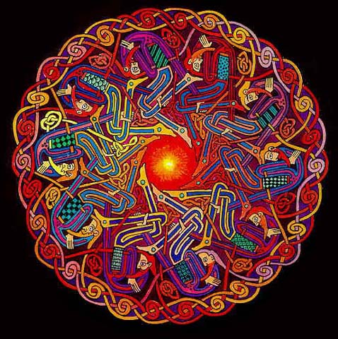Courteny Davis is another of my favourite Celtic artists. His combination of images and traditional celtic art makes for many stunning paintings. I have never had the chance to meet this artist, although I hope to in the future. He has illustrated several books including The Art of Celtia, King Arthur's Return, The Celtic Art Source Book, and Celtic Borders and Decoration, as well as others that I cant think of at the moment :0). He has even illustrated a tarot game, the name of which I cant remember either (dont worry, I'll check!). He lives in England at present, and continues to produce masterpieces of celtic art. Here are some of his designs, I think you'll agree that his work is great!