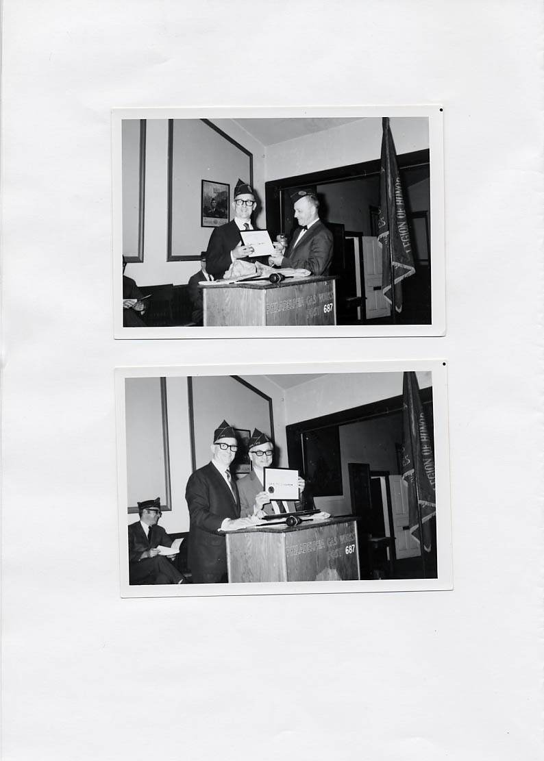 Dr Sigmund Faye, pictured below handing out Post awards to Ben and Jack Sturman, was a noted dental surgeon born and raised in Germany before emmigrating to America as a teenager. He distinguished himself during WWII for leading a daring and successful volunteer behind-the-lines rescue mission in France from which there was little hope of returning alive. He was dressed as, of all things, a Nazi SS officer whom he impersonated successfully, signing for and rescuing a group of US POWs awaiting Gestapo interrogation.