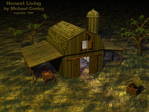 in trueSpace2 (barn,wagon,well and silo).