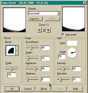 Once your bowl is cleaned and making sure you are on the bowl layer, which should be layer 2, go up to Image > Effects > Inner Bevel and use these settings or settings of your own.