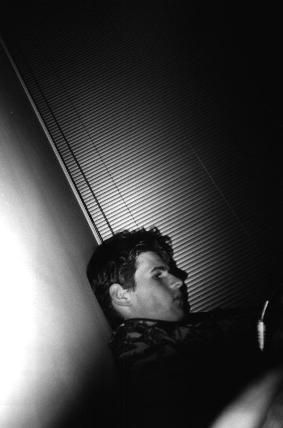 Trevor sitting beside me on our blue day. I was sad because a good "friend" of mine tried to take over the art magazine at school behind my back. Trevor gave me a hug and I cried a little and then we talked about how we didn't want to go home and no one understood us back home, and we all got sad again. This was in Aaron's dorm around three in the morning. Later on that night we stuffed Trevor in the cabinet under the kitchen counter and Trevor sang us show tunes from Rocky Horror Picture Show (I'm a sweet transvestite from...transsexual... Transylvaniaaaa!!!)