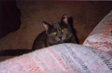 | This is my other baby, Holly. She was born November 5th 1995. Holly is a mutt cat, and we got her for free from some friends. She has her bad days, but underneath she's a loving and affectionate cat. We love her to death. |