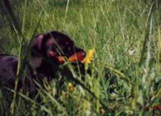 | Pheobe was born Febuary 6th 1998. She is a miniature Dachshund, and probebly will not reach more than 9 pounds. Right now Pheobe is an adorable, people friendly puppy. She a lot of fun, but a little obnoxious at times. |