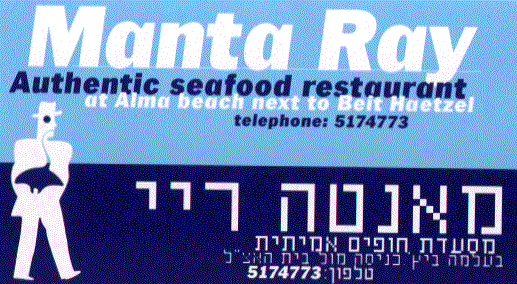 Alma beach next to Beit Haetzel. Tel Aviv 03-5174773 R Atmosphere & Design -Ugly big big big hall with heavy ferniture and a nice (too windy in winter though) balcony. Service - We made a reservation hours in advance. When we arrived we were notified that an error in the reservation hour was made. WE had to wonder around the beach for 30 minutes after being shouted at by the restaurant manager. No conpencation was offered after wards. Apart for that, I don't like the idea of my waiter wearing sun glasses. Price - I was invited by the "parents in law" so I am not sure, the dishes were somewhat between 40-90 NIS, I believe. Desserts were 20-40 NIS. Let's jsut say whatever it cost, it wasn;t worth it. Recommended dish - The little fudge brownie at the end. The other's were happy with their dishs. Lots of little massetes. My salmon in red whine sauce was nice, but nothing special. In conclusion... Very dissapointing for me. I expected so much from this place and got so little.. I know the others, who probably expected less than me liked it. I have no intention of going there again. An average B level restaurant food in a high cost and bad service all disguised as a first class creative cooking place. You can get much better cost for value at Suzanna, Taberna in Herzelia beach and many other places, where you will also be accepted with a smile.