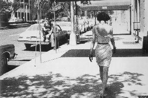I'll tell more about the woman with the wrapped nettles later. I'm standing at the big window by my table, looking out at the people going by on 52nd St., when a woman pulls up fast in a green Bugatti and parks in front of my place. She gives me the eyelids, the drugged gray eyes, and then motions slowly with two fingers, as if I should put on my trenchcoat, slip through the door, and get into this car. She's only about thirty feet away, if that.