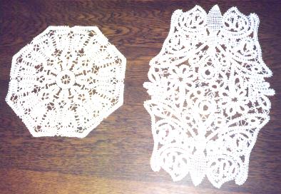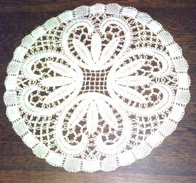 I made this tablecloth in 1974. It's made of cotton (DMC no. 30). Diam. 40 cm.