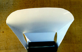 Após recortado na linha cheia deve-se dobrar nas linhas pontilhadas para se obter o formato exposto nas fotos que são de um rebatedor feito com cartolina dupla face branca/dourada montada para usar a face branca