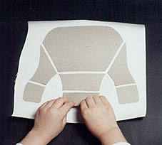| 2- Transpor o traçado do molde para o Papel Paraná, com carbono por exemplo e recortar no contorno e nas linhas pontilhadas. Serão ao todo 7 peças; |