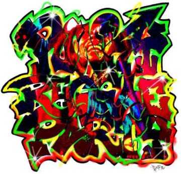 This comp is a tribute to the honorable prophet Robert Nesta Marley's classic, "Punky Reggae Party", done for Bob Marley Music, still located at 56 Hope Road in Jamaica. I don't know if any of the designers who put together Adobe's Photoshop ever did any wallwriting, but as it turns out you can do some phat tags & never have to look over your shoulder. Check out my brothers' Jeff Wood, Bob Sauer, & Mikey Martin's pages for their Marley posters that you can buy online. And remember your roots, rudy,... originally Bob Marley, along with Peter Tosh & Bunny Livingstone were Trench Town rudeboys who played ska years before they'd collectively invent reggae!