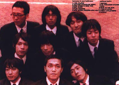 初めてNATIONAL FRUIT 8というバンドを知ったのは、Harmony In Your Bathroomとのスプリット7"を聴いたときで、"ステレオサマー"という曲でした。大好きなイギリスのバンドを聴くときのような、不思議なドキドキが、今でもあの曲のイントロのギターを聴くと心の中で高まります。そして、初めてライブをみたのもHarmony In Your Bathroomと一緒に出演してた時でした。その時、初めて他の曲も聴いたですが、どの曲も「そう、そう。」と思わずうれしくなるような展開をしてゆくので「日本にもこんなバンドが...」とびっくりしました。私たちの大好きなアメリカやイギリスなど海外のバンドと同じものをNATIONAL FRUIT 8は持っているような気がします。音の雰囲気、暖かさが意図的なものでなく自然ににじみ出ていて、とてもおだやかな気持ちで聴いていられます。もちろん、そこには繊細さや緊張感も含まれていて、その独特の空気、浮遊感が私たちは大好きです。本当に数少ない、心から素敵と思える、共感できるバンドです。これからもずっと、ファンで、応援していますので、新しい曲をどんどん発表してほしいです。