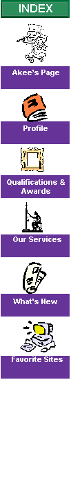 Akee's Page | Profile | Qualifications & Awards | Our Services | What's New | Favorite Sites
