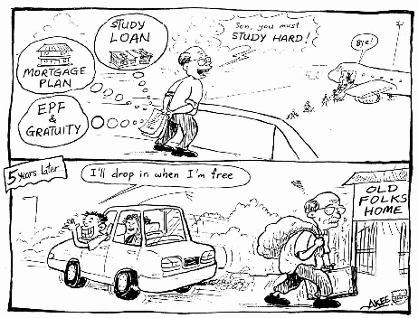 This competition was organised by Sathya SAI Central Council & Sai Baba Centres Of Malaysia to promote human values programmes and service projects for national welfare. This cartoon was picked as the first prize winning entry out of 900 entries received nation-wide.