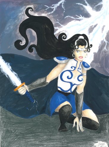 Just for a change, I thought I'd draw her ready to kick some @$$!