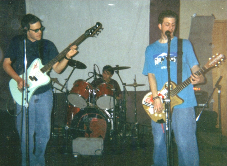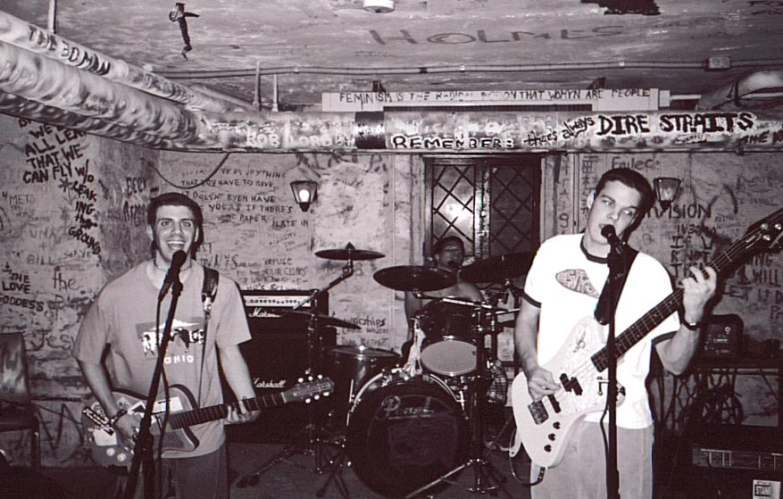 These ones showing us in all our black and white glory were taken by Michelle Mitchell at REA coffeehouse at Chatham College on January 7, 2000.